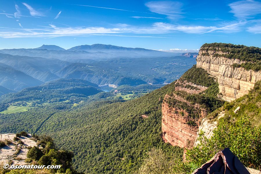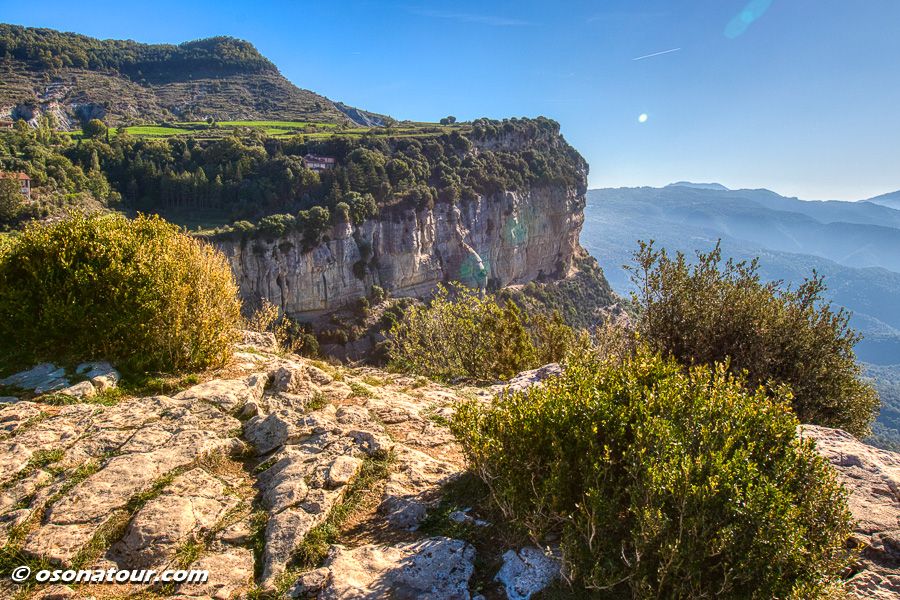 Formació rocosa coneguda arreu del món. Les parets s'enlairen 400m per sobre del pantà de Sau i tenen una verticalitat de 200m.